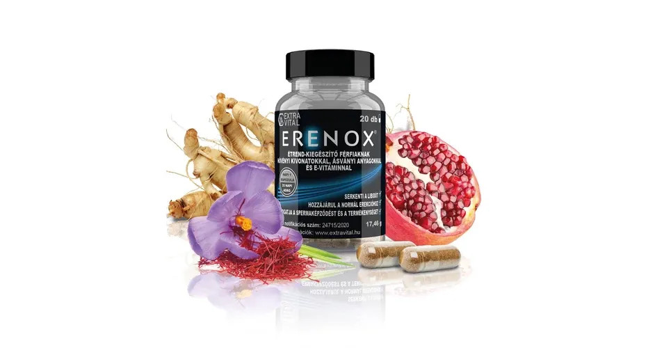 Az ERENOX férfiaknak kapszula egy természetes összetevőket tartalmazó étrend-kiegészítő, amely támogatja a férfiak szexuális egészségét és vitalitását. Összetevői között megtalálható a szőlőmag kivonat, gránátalmamag kivonat, Panax ginzeng gyökér kivonat, sáfrány bibe kivonat, E-vitamin, cink és szelén. Ezek a komponensek hozzájárulhatnak a libidó fokozásához, a termékenység elősegítéséhez, az erekció támogatásához, a sperma mennyiségének növeléséhez, a prosztata normál működéséhez és a normál tesztoszteronszint fenntartásához.